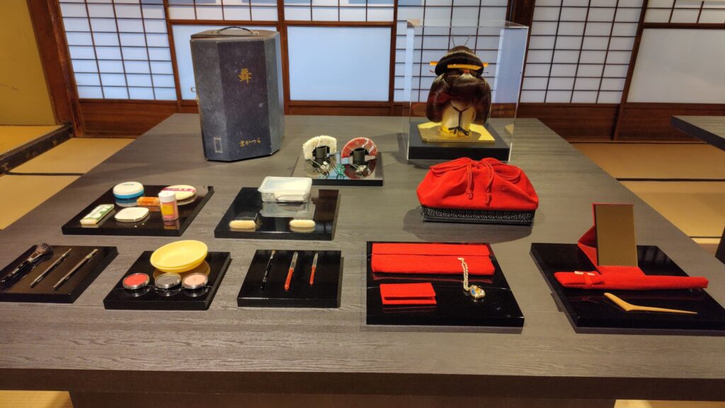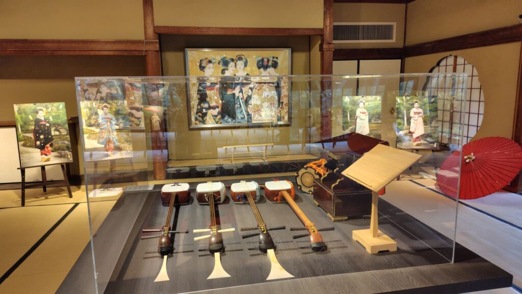 Some sections also display musical instruments, tea ceremony tools, and props used in geisha dances, offering a rare glimpse into their private world.